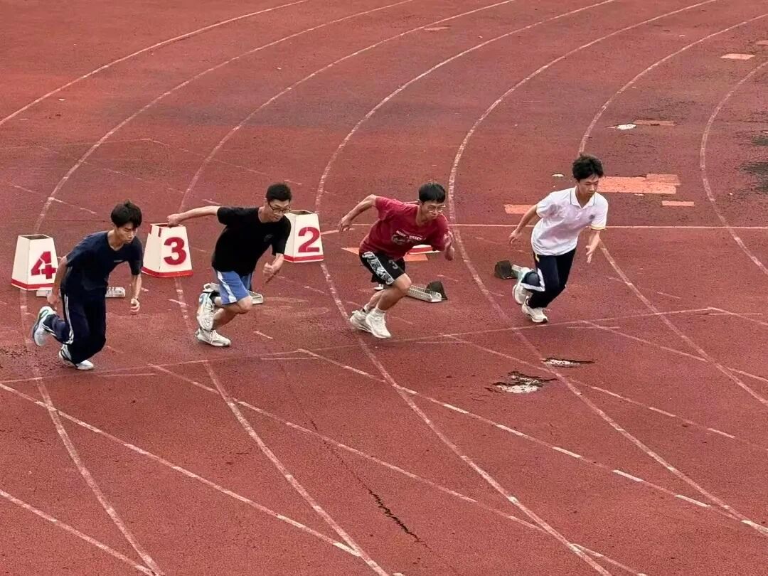 短跑赛道上,枪声一响,身影如电!运动员们全力冲刺,在阳光下划出耀眼轨迹,每一步都是青春力的燃爆绽放!